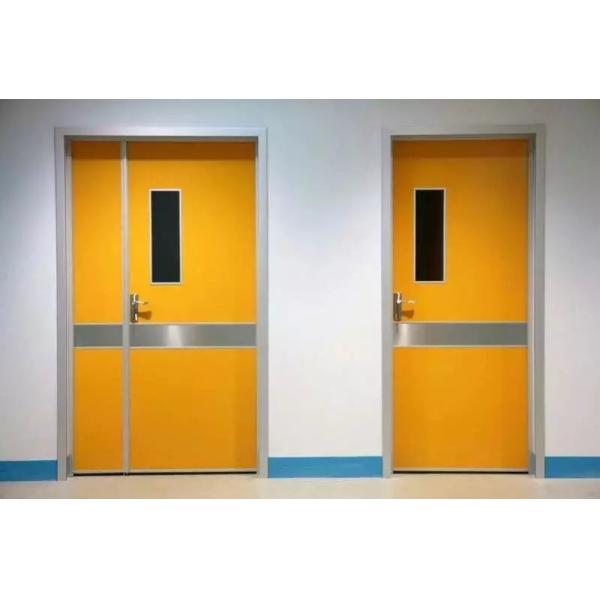 ★ The surface can be decorated with large sized matte stainless steel, steel or aluminum,etc. And can be sprayed with plastic coatings of different colors.Sealing strips are embedded between the two sides and the middle seam of the door leaves, which meets the sanitary requirements in hospitals. Protective manual door is available by lining lead in door frame and door bodies;